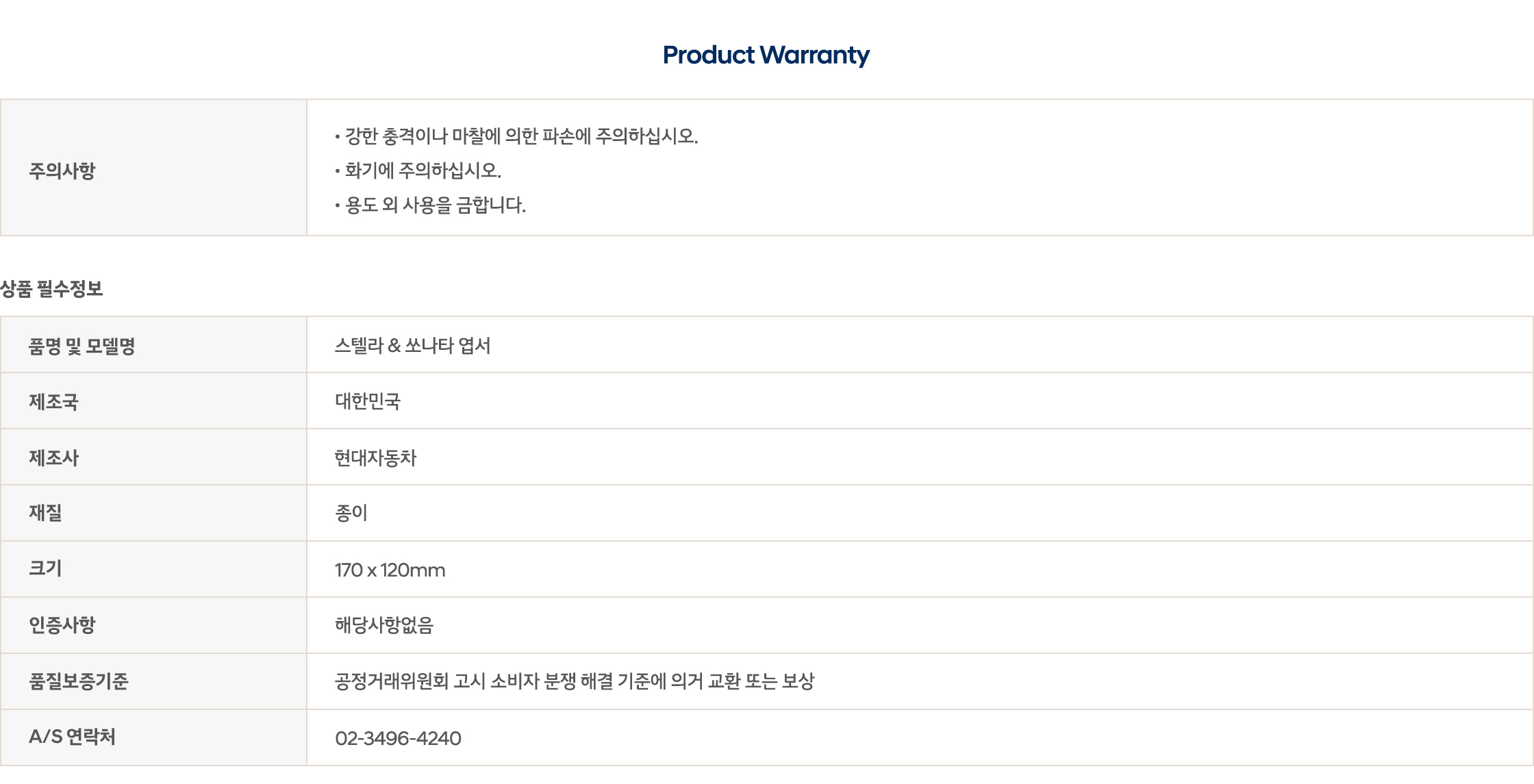 본 쇼핑몰은 현대자동차 공식 라이센스 제품을 취급하며 판매와 운영은 이노션이 담당하고 있습니다.